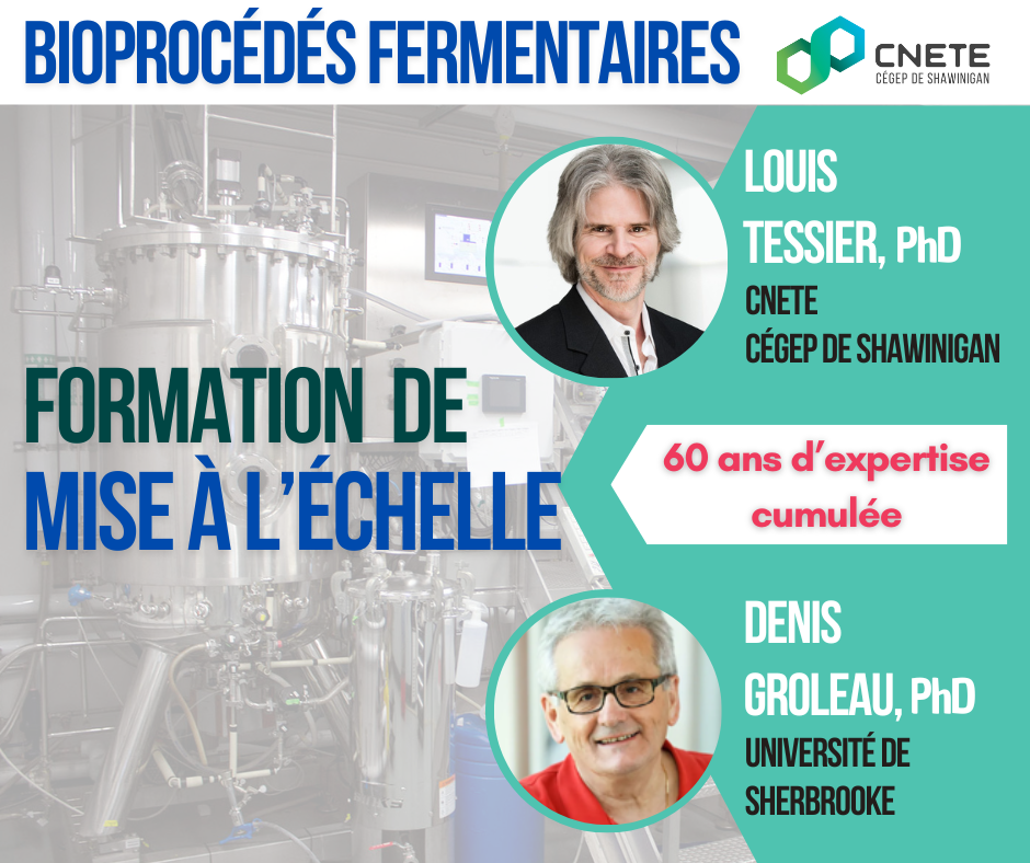 Forts de plus de 60 ans d’expérience cumulée en bioprocédés, Denis Groleau, PhD (Université de Sherbrooke) et Louis Tessier, PhD (Cégep de Shawinigan / CNETE) sont des experts qui sauront à la fois vous transmettre les notions essentielles et stimuler votre réflexion!